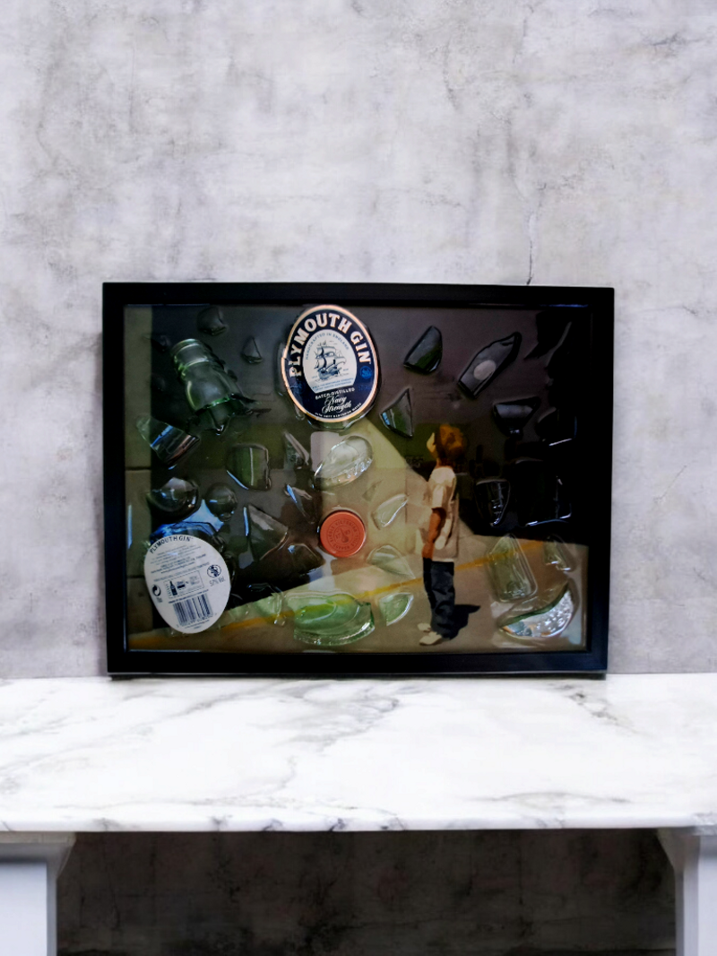 bottle art, fatto a mano, regalo compleanno, regalo natale, regalo per amico, regalo speciale, quadro bottiglia, bottiglia rotta, arte moderna, idea regalo, hand made, Pop art, Plymouth gin